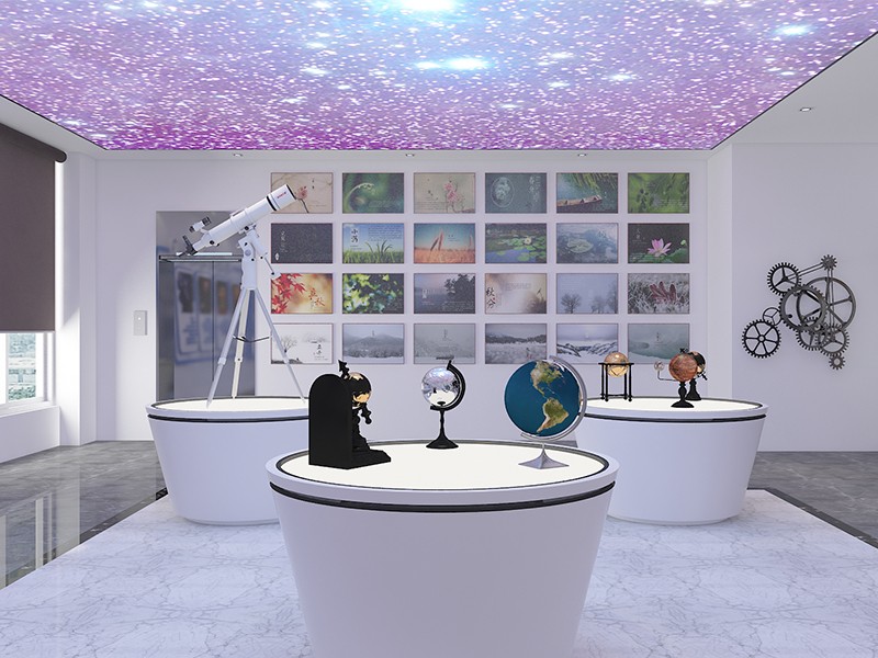 濟南有人物聯網技術有限公司展廳設計裝修效果,展廳主要是以白色和藍色搭配為主色調。在展廳內高科技元素與未來感設計融為一體,通過一系列的展示,生動的描述了公司的物
