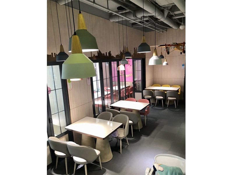 濟南森林象親子餐廳裝修施工完成效果圖以自然、溫馨為主題,門口有兩只小象在歡迎孩子們的到來,整個室內(nèi)以自然色彩為主色調(diào),里面還有一個小型的游樂場,能讓孩子們歡快的游玩。餐廳的墻上以卡通動漫為壁紙,激發(fā)孩子們的童真興趣。除此之外還有休息的地方,可以讓孩子們在童年的海洋里面暢游,在休息區(qū)還會有動畫片和玩具供孩子們游玩,餐廳的盤子、調(diào)味料盤瓶等一些也融合了卡通元素。