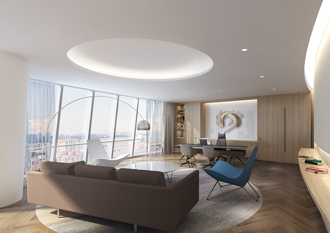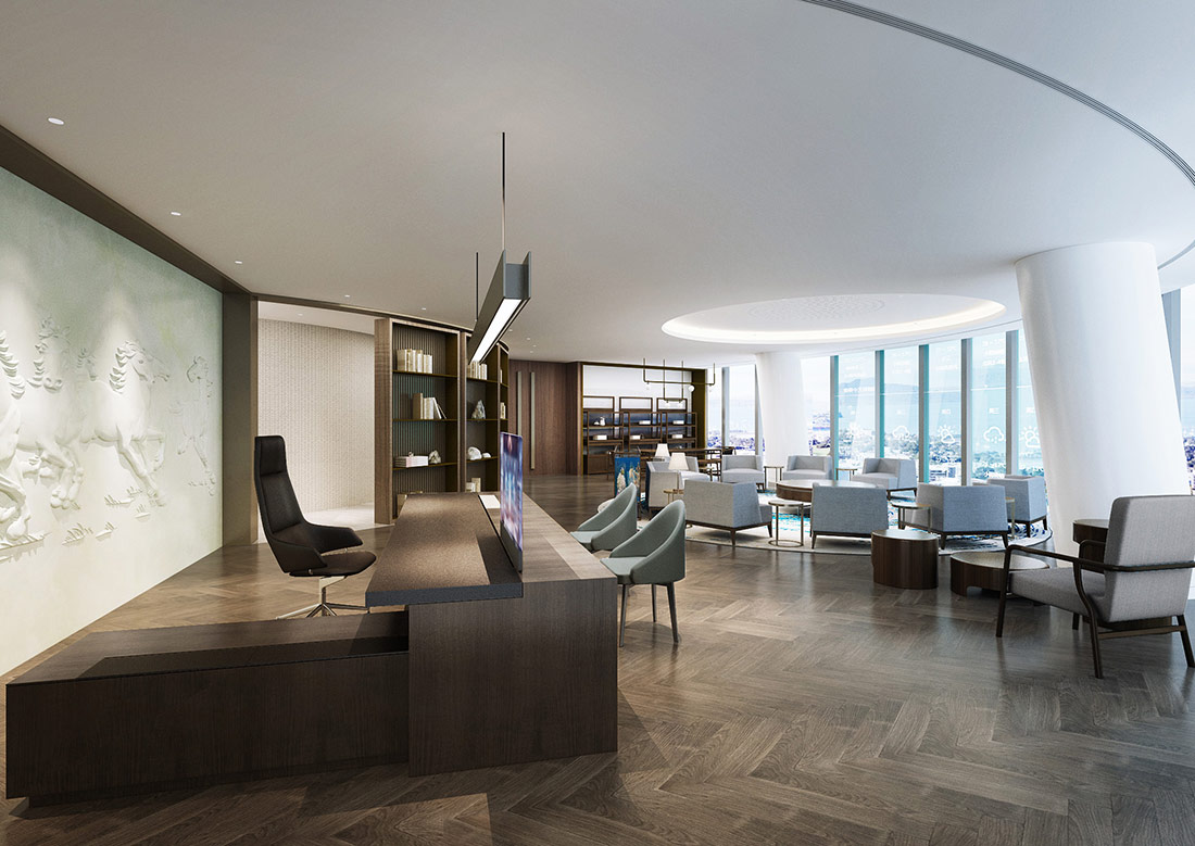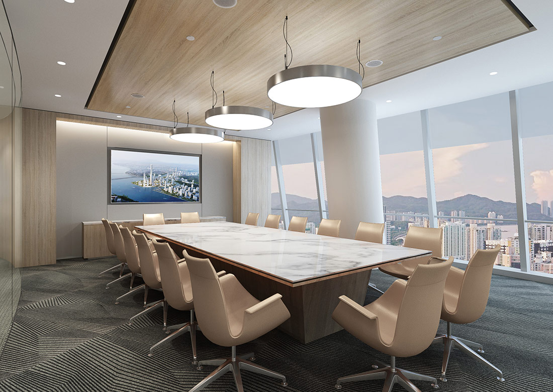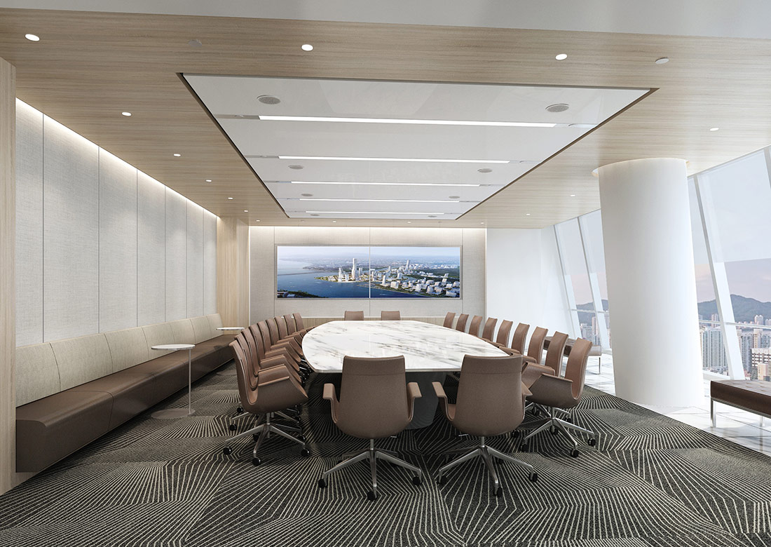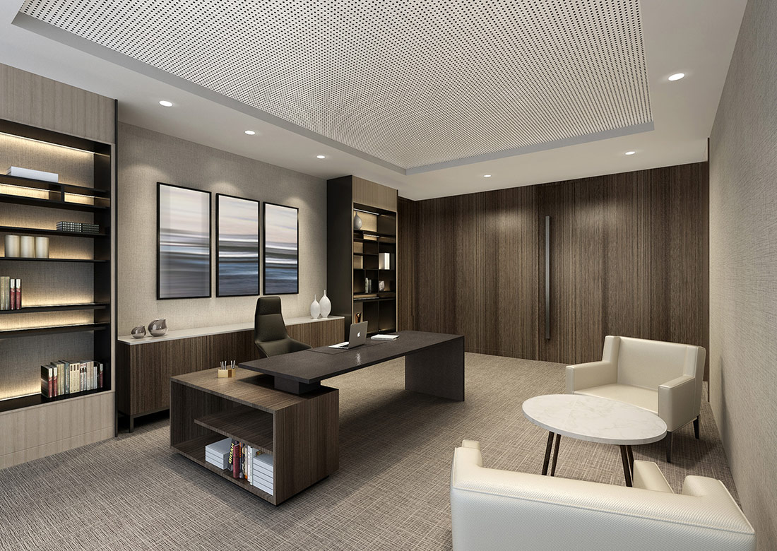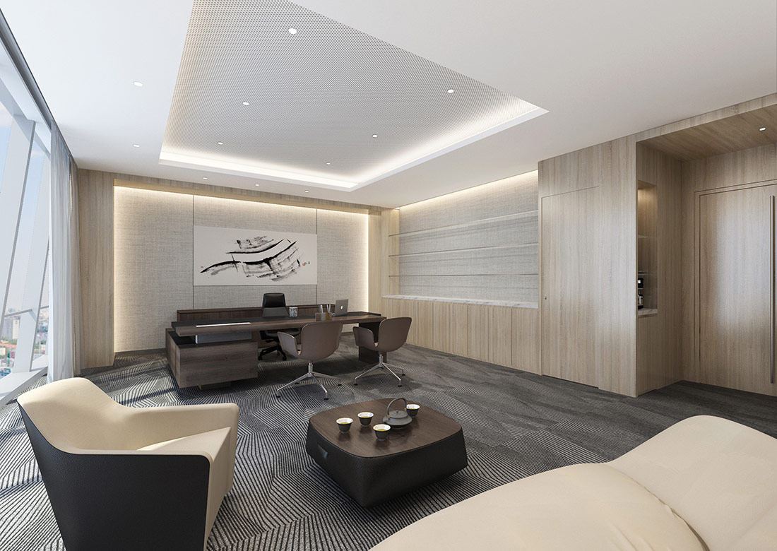 大型辦公室裝修效果圖展現了一個集于現代、高效和舒適融為一體的辦公環境。辦公室裝修設計時利用了大面積的特點將開放式辦公區域與會議室等其他區域巧妙的融合到了極致,既保證了團隊間的緊密合作,也兼顧了員工們的休閑辦公。使用落地窗進行搭配,讓整個辦公室顯得更加明亮整潔。辦公室整體采用了大面積化設計,讓客戶進門后感覺到豪放、大氣、高端。利用高效的照明系統與通風系統能夠確保室內光線的充足與空氣流通。