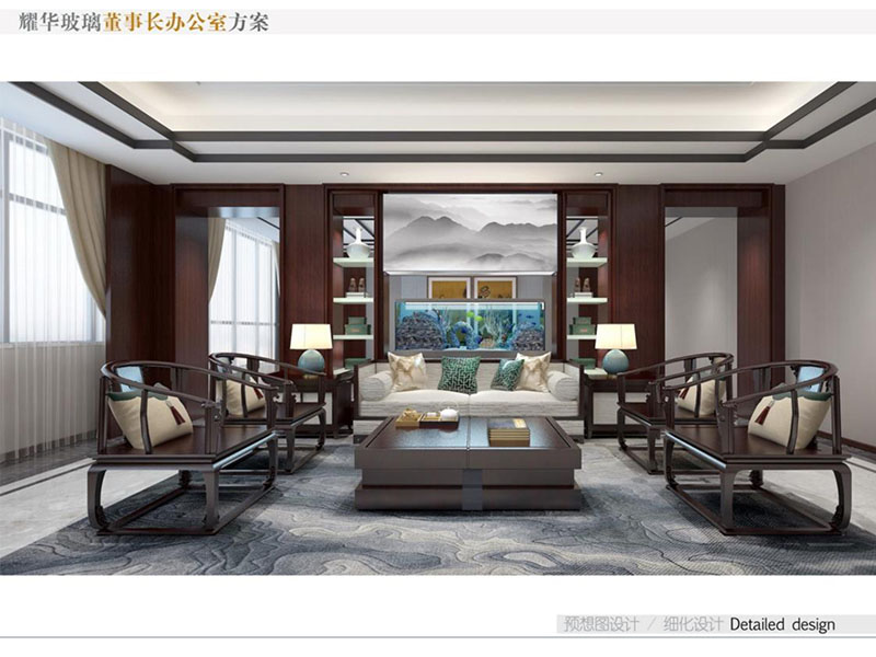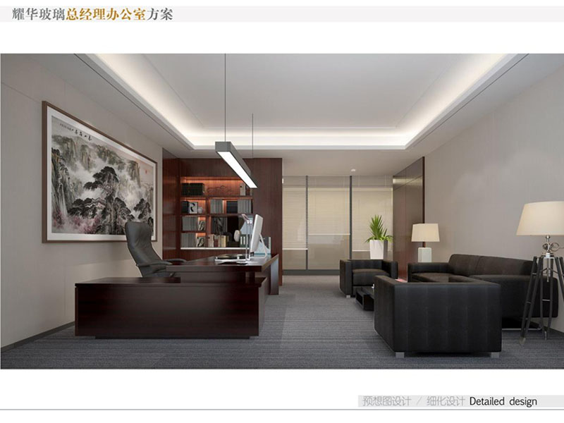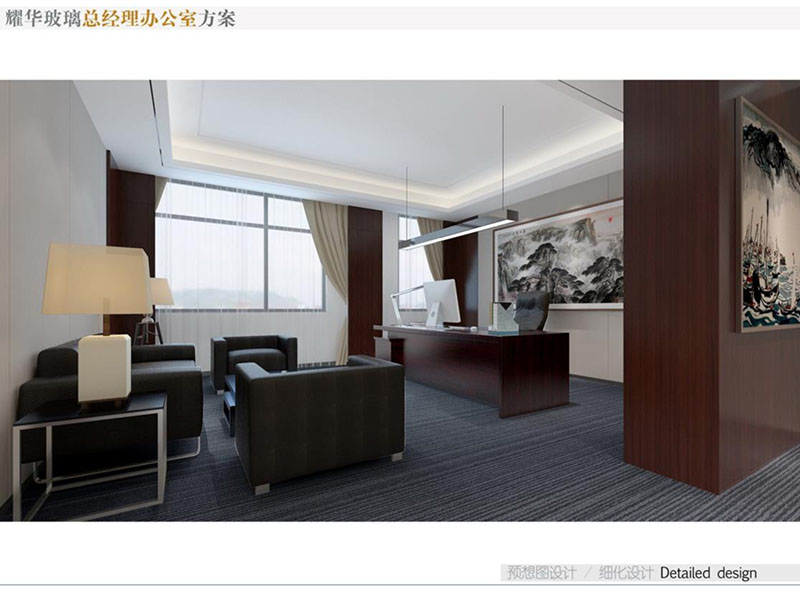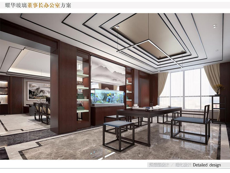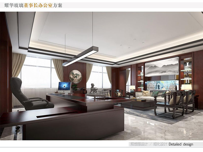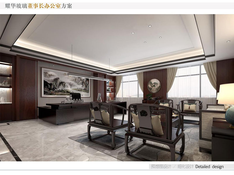 設計理念: 耀華玻璃董事長辦公室裝修效果圖彰顯出了企業的高端形象。董事長辦公室設計采用了中式風格,運用高質量的木材、優質玻璃等,給辦公室營造出沉穩的氣氛。空間布局合理,既有寬敞的辦公區,也有舒適的接待室和休息區。同時,辦公室內也會融入耀華玻璃的特色元素,如玻璃藝術品或公司標志,體現企業品牌和創新精神。