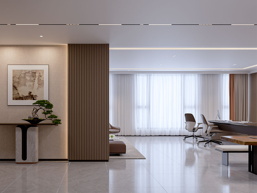 山東邦正機(jī)械設(shè)備有限公司裝修效果以 “工業(yè)基因 + 現(xiàn)代辦公” 為核心,前臺(tái)接待區(qū)用深灰石材背景墻搭配金屬 LOGO 與機(jī)械零件擺件,傳遞專業(yè)硬核的品牌形象;該辦公室裝修是采用模塊化工位設(shè)計(jì),開放區(qū)域以淺色調(diào)與機(jī)械主題裝飾畫營造高效氛圍,獨(dú)立辦公室則通過木飾面與人體工學(xué)家具提升舒適感;展示區(qū)設(shè)抬高式產(chǎn)品陳列空間與軌道射燈,搭配電子屏及榮譽(yù)展示墻,直觀呈現(xiàn)企業(yè)實(shí)力;配套的茶水間與不同規(guī)格會(huì)議室,兼顧員工休閑與商務(wù)需求,整體實(shí)現(xiàn)品牌屬性、實(shí)用功能與舒適體驗(yàn)的統(tǒng)一。