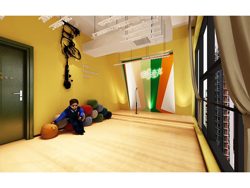 阿斯盾兒童英語教育機(jī)構(gòu)裝修設(shè)計(jì)注重營造溫馨且富有教育意義的學(xué)習(xí)氛圍。整體色調(diào)以明亮、柔和的色彩為主,利用明亮的色調(diào)可以激發(fā)出孩子們的好奇心和想象能力。在裝修設(shè)